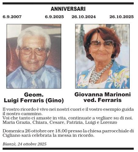 Anniversari Geom. Luigi Ferraris e Giovanna Marinoni