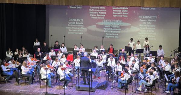 Gli alunni della scuola media Ferrari, diretti dai loro docenti di strumento hanno sostenuto per quasi due ore un concerto con molti brani tratti dalla tradizione natalizia europea come “Carol of the bells” a “Santa Claus is coming to town”, fino a un repertorio più classico come la “Persicher march” di Strauss e per terminare con musiche tratte da colonne sonore di grandi film come “Merry Christmas mr. Laurence” o la celeberrima “Jesus Christ superstar”.