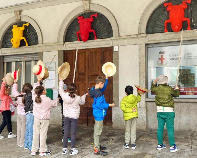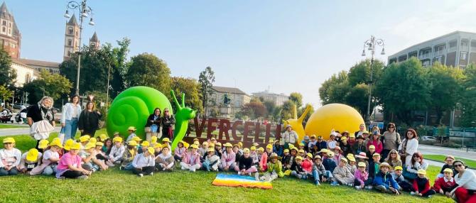 Nel pomeriggio di lunedì 14 ottobre, i piccoli studenti hanno partecipato con entusiasmo all’iniziativa “Un selfie con la Cracking Art”, promossa dal Comune di Vercelli, che invita cittadini e scuole a scoprire e fotografare le curiose installazioni colorate sparse per la città.