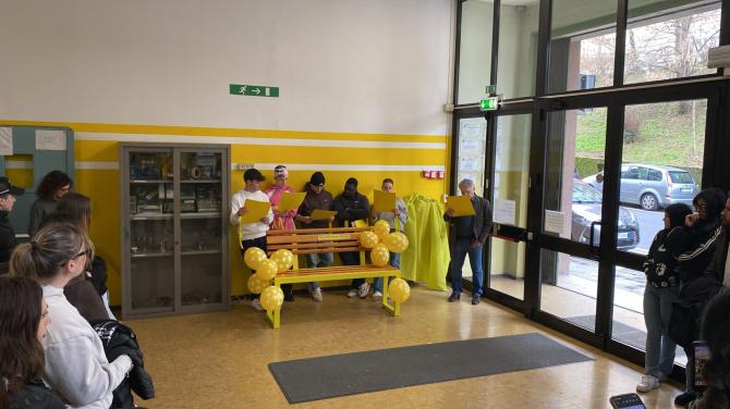Durante la cerimonia inaugurale che è avvenuta in contemporanea all’Ipia Magni e al Tecnico Lirelli di Borgosesia e alla Scuola Barolo di Varallo, i protagonisti sono stati gli studenti che hanno letto e spiegato il significato dell’iniziativa condividendo riflessioni sul valore della “panchina gialla” come luogo simbolico di accoglienza, dialogo e supporto per chi vive situazioni di disagio.