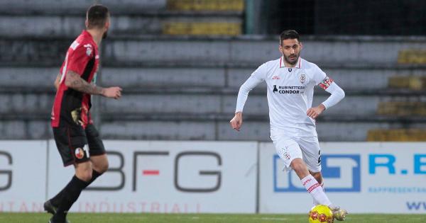 Il capitano della Pro Vercelli Alberto Masi in azione al "Porta Elisa" contro la Lucchese (foto Benedetto)