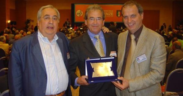 Da sinistra: Nino Inversi, ex presidente della Figc regionale, Gigi Adami e Giorgio Bergesio, ex presidente del Settore giovanile e Scolastico della Figc regionale