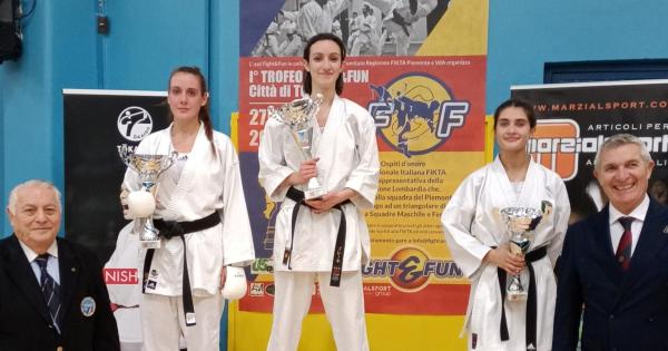 Grande prestazione di Carlotta Gerla al primo trofeo “Città di Torino” di karate disputato al Palazzetto dello Sport “Le Cupole” di Torino, manifestazione di karate riservata a tutte le cinture. All’interno della manifestazione si è esibita anche la Nazionale Italiana Fikta di Kumite (combattimento), suddivisa in due squadre da cinque atleti, e le Rappresentative regionali di Piemonte e Lombardia.