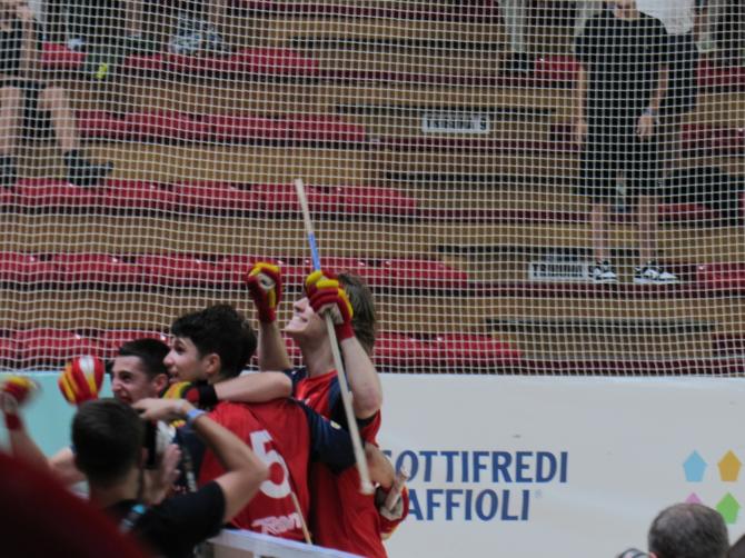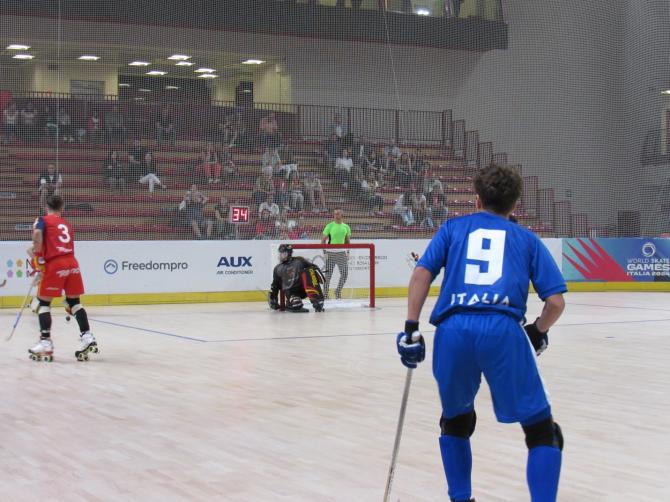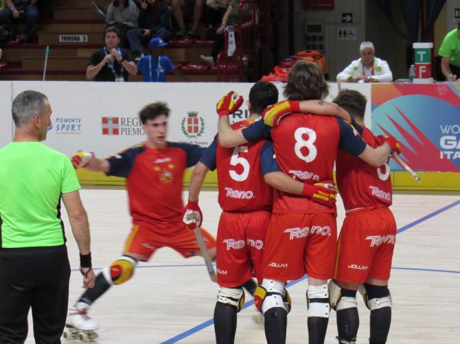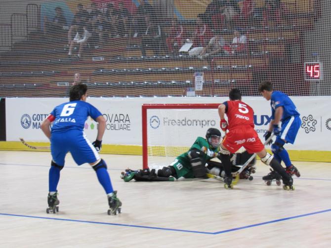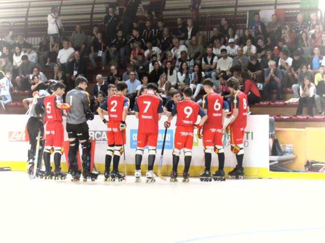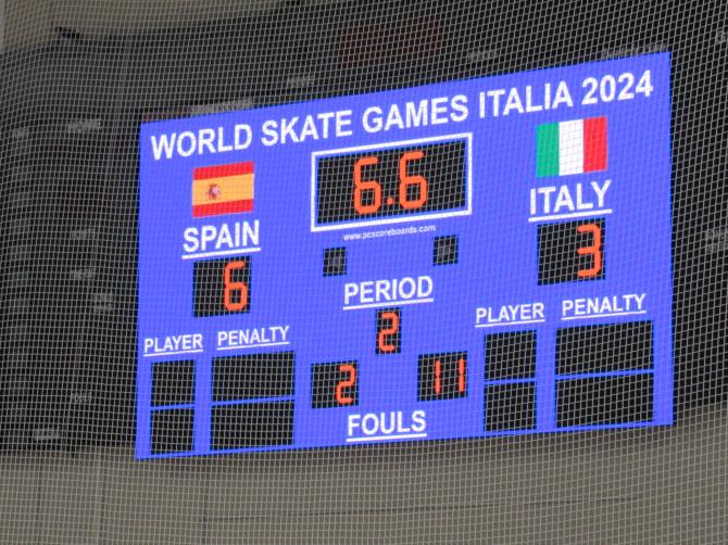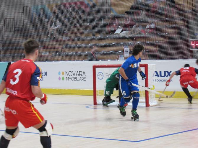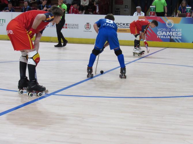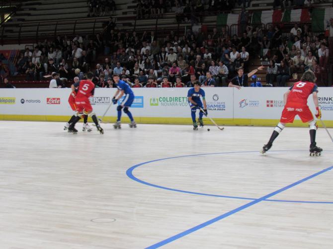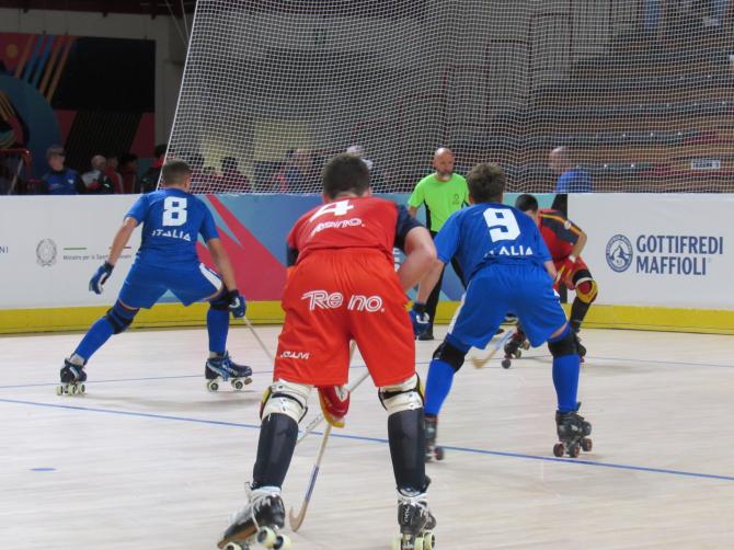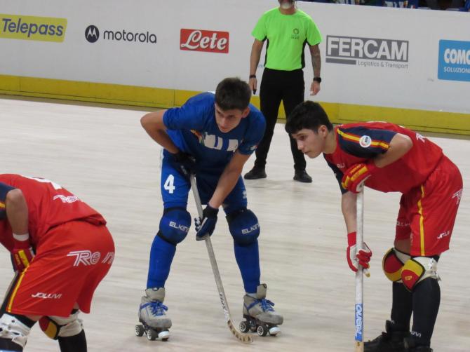 Sotto di 3 reti nel primo tempo, la seconda frazione di gioco si riapre con un altra marcatura della Spagna poi gli azzurri trascinati dal capitano Paolo Colamaria trovano la reazione e sfiorano l'impresa. Giocando con cuore e carattere si portano sul 4 a 3. Ma questo non basta, sul finale la Spagna è più precisa, dal dischetto non sbaglia e segna ancora: 5 a 3. La sesta rete giunge a 8'' dalla sirena con la Spagna in superiorità numerica dopo l'espulsione di Crocco.