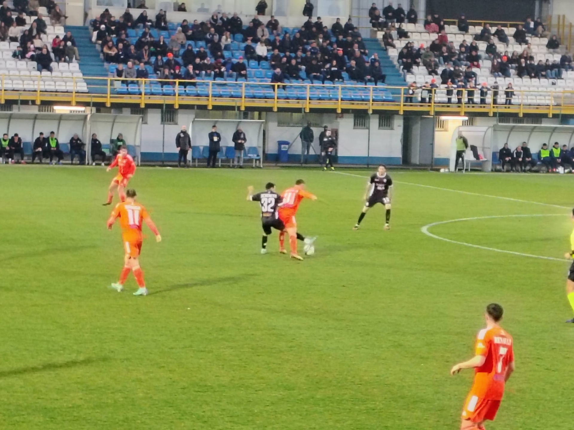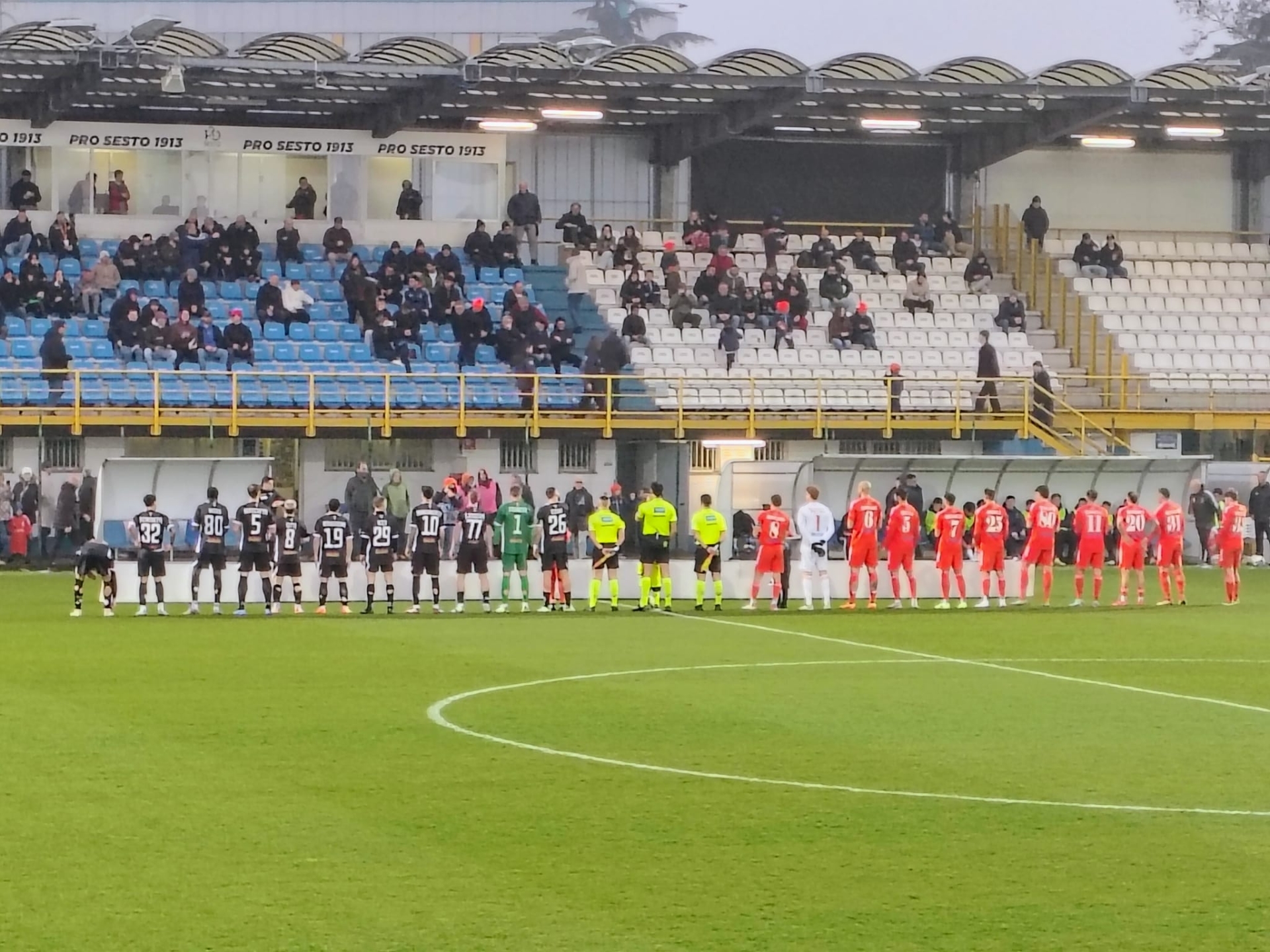 NOTE - Pomeriggio uggioso e umido, più da caldarroste che primaverile (9°). Terreno in erba naturale in condizioni discrete, ma leggermente allentato dalla pioggia scesa in giornata. Spett.: 200 circa (una quarantina dalla città dei 7 scudetti). Pro nel classico completo nero (Franchi è in verde), Alcione in all-red (Bacchin è in bianco); la terna è in giallo nero. Possesso palla: 52% (Alcione) a 48%. Rec.: 1’+4’.