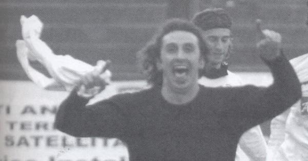 Giovanni Arioli esulta dopo la vittoria della Pro Vercelli (da "Il Grande Album" della Pro Vercelli)
