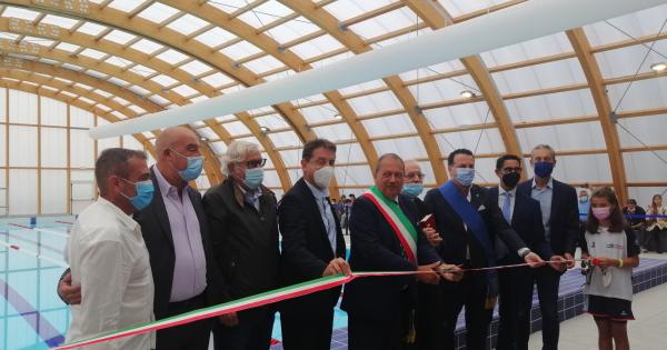 Il sindaco Andrea Corsaro taglia il nastro inaugurando "Le Piscine"