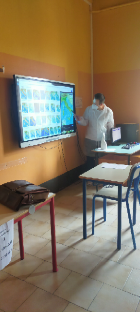 Le città campane sono state inserite dal 1997 nell’albo dei siti Patrimonio mondiale dell’umanità dall’Unesco. Attraverso fotografie, immagini, proiezioni multimediali siamo tornati indietro nel tempo e abbiamo vissuto da attenti, curiosi e commossi spettatori le tragiche vicende delle città che furono travolte dalla lava, dalle ceneri che uccisero tutti gli abitanti in soli tre giorni. La “bomba vulcanica” ha travolto le antiche città lasciando desolazione e morte con una velocità di 150 Km orari e con un calore di 400 gradi centigradi. Il flusso piroclastico ha distrutto due ricche e importanti città. Guardando il video, fedele ricostruzione di quei terribili momenti, ci sembrava fantascienza, eppure è stato il passato, un oscuro passato. Abbiamo visto calchi di corpi sepolti, famiglie, bambini, un cavallo, un cane, ruote di carri, proiettili di catapulta, schiavi, corpi accovacciati, in fuga, persone che cercavano di portare via beni materiali, di mettere in salvo oggetti preziosi, mani sul volto per proteggere istintivamente la faccia, espressioni domestiche, pani carbonizzati che dimostrano che l’eruzione è avvenuta all’ora di pranzo, verso mezzogiorno. Abbiamo notato un’armilla d’oro che attesta la ricchezza di Pompei, una bottiglia di olio ben conservata, la più antica della storia e a presentare questo reperto in foto abbiamo visto Piero Angela. Davvero siamo stati tutti colpiti e incuriositi da questa bellissima lezione.