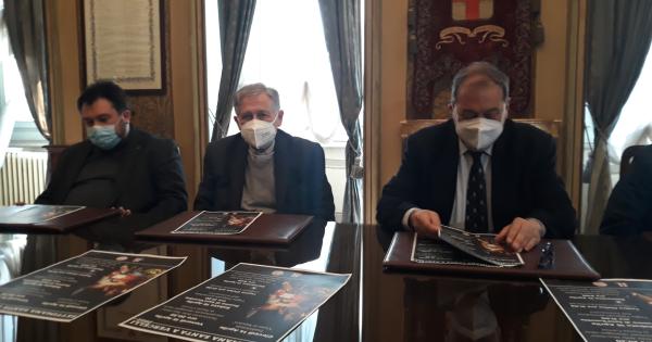 La presentazione del programma della Settimana Santa 2022: da sinistra monsignor Denis Silano, il vicario generale della diocesi Mario Allolio, il sindaco Andrea Corsaro