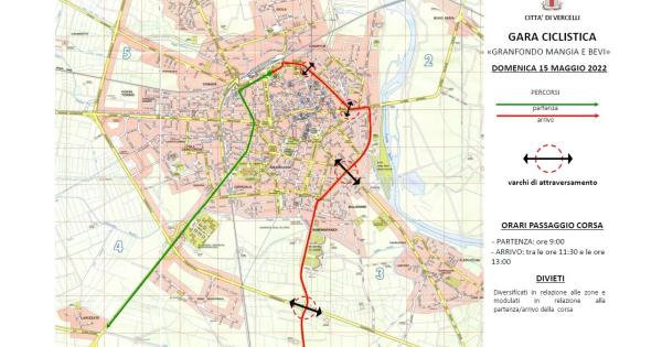 Domenica 15 maggio avrà luogo la seconda edizione della gara ciclistica denominata “Gran Fondo Mangia e Bevi Vercelli - Monferrato”, organizzata dalla A.S.D. Team One P.M. e patrocinata dall’Amministrazione Comunale.