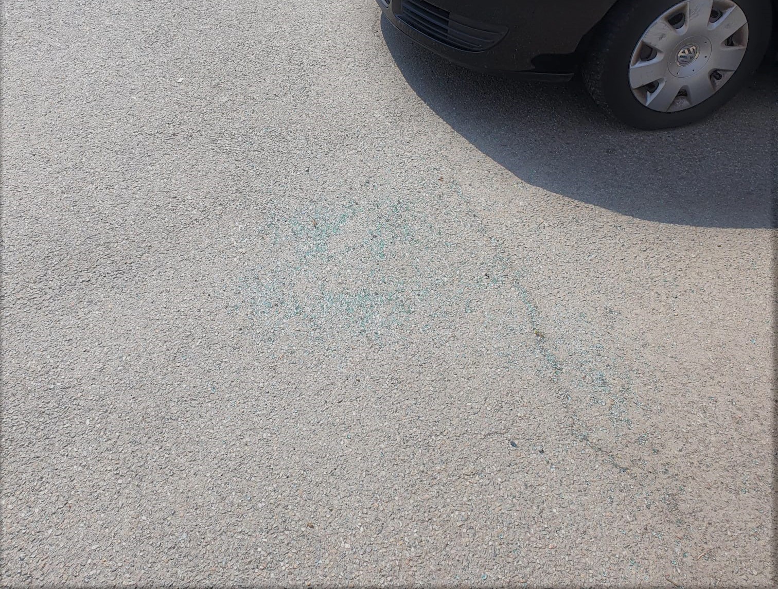 "Queste sono le foto dei vetri sbriciolati presenti nel parcheggio adiacente al civico 21 di via Bezzecca".