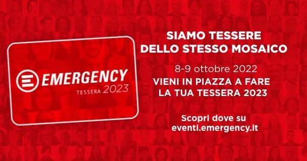 Sabato 8 ottobre e domenica 9 ottobre i volontari saranno nelle piazze d'Italia per permettere di sottoscrivere la tessera 2023: il costo è di 12 euro fino a 25 anni, di 30 euro tra 26 e 64 anni, di 20 euro oltre i 65 anni. La tessera 2023 dà diritto a ricevere la rivista trimestrale di Emergency. I fondi raccolti andranno a sostegno di tutti i progetti di Emergency. Il Gruppo Emergency di Vercelli sarà presente con un banchetto in Piazza Cavour, sabato 8 e domenica 9 ottobre dalle 10 alle 12.30 e dalle 15 alle 18.