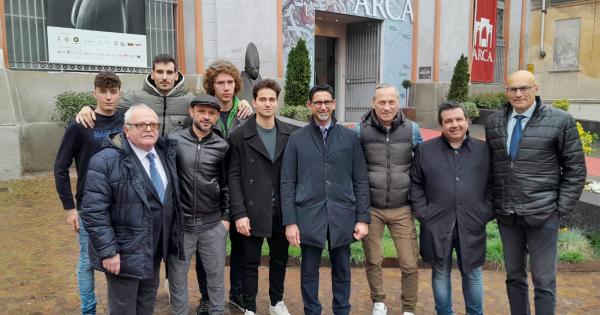I giocatori dell’Engas H.V. in visita questa mattina (giovedì 30 marzo) alla mostra “Giacomo Manzù. La scultura è un raggio di luna” ospitata all’interno del contenitore museale Arca, nell’ex-chiesa di San Vittore, organizzata dall’Amministrazione Comunale, con la Curia Arcivescovile, lo Studio Copernico e la Fondazione Manzù. Una parte documentale è invece visibile al Museo del Tesoro del Duomo, piazza D'Angennes
