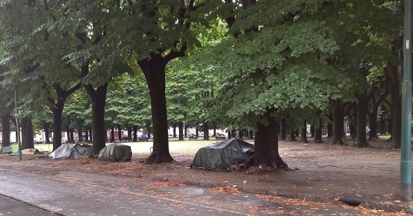 Queste persone non possono sparire. Attualmente non hanno un altro posto dove andare a ripararsi, a parte i portici e le loro cose sono ammonticchiate sotto gli alberi. Purtroppo gli eventi metereologici avversi continueranno: ci saranno altri violenti temporali.