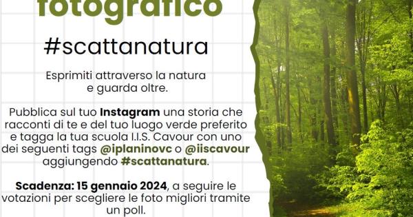 È ufficialmente partito il contest fotografico ambientale #SCATTANATURA, dedicato agli studenti e alle studentesse dell’I.I.S. Cavour, che dovranno pubblicare una storia su Instagram taggando la loro scuola (@iiscavour o @iplaninovc) aggiungendo l’hashtag #scattanatura.