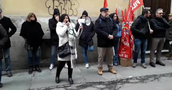 Vercelli: il presidio dei sindacati in occasione della Conferenza d'ambito di Egato2, attualmente in corso, in via Carducci. Nell'incontro dovrebbe essere definito il modello di gestione del servizio idrico dell'ambito (Biellese, Vercellese e Casalese)