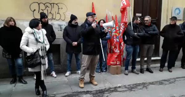 Vercelli: il presidio dei sindacati in occasione della Conferenza d'ambito di Egato2, attualmente in corso, in via Carducci. Nell'incontro dovrebbe essere definito il modello di gestione del servizio idrico dell'ambito (Biellese, Vercellese e Casalese).