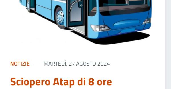 Lo fa sapere l’azienda di trasporti, che aggiunge: “Risulteranno garantite le corse avente sviluppo totale o prevalente al di fuori della fascia oraria di sciopero sopra indicata; in ogni caso, si consiglia di verificare l’effettiva garanzia delle corse, consultando gli orari sul sito www.atapspa.it, oppure chiamando il numero verde 800 912716”.