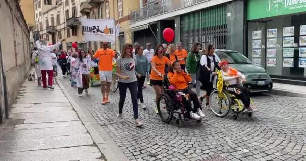 Il passaggio in via Galileo Ferraris della Camminata Senza Barriere #4 - prendiamoci per mano e camminiamo insieme.