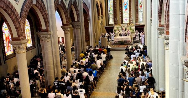 La celebrazione con 350 persone del Cammino Catecumenale nella chiesa del Sacro Cuore al Belvedere (foto Salesiani Vercelli)