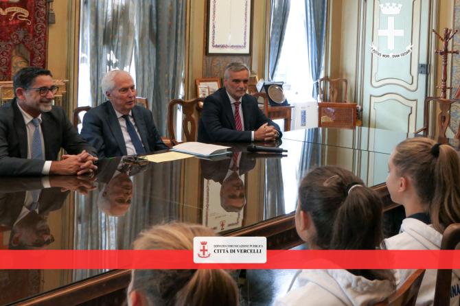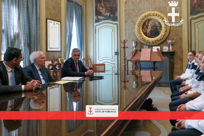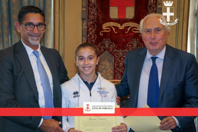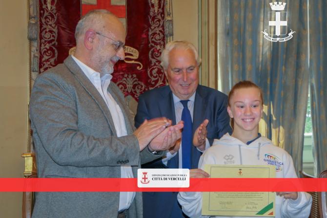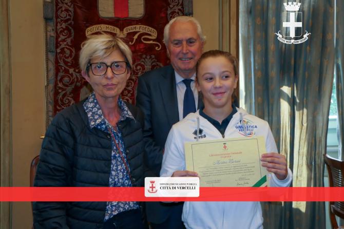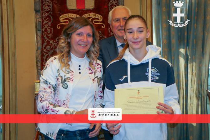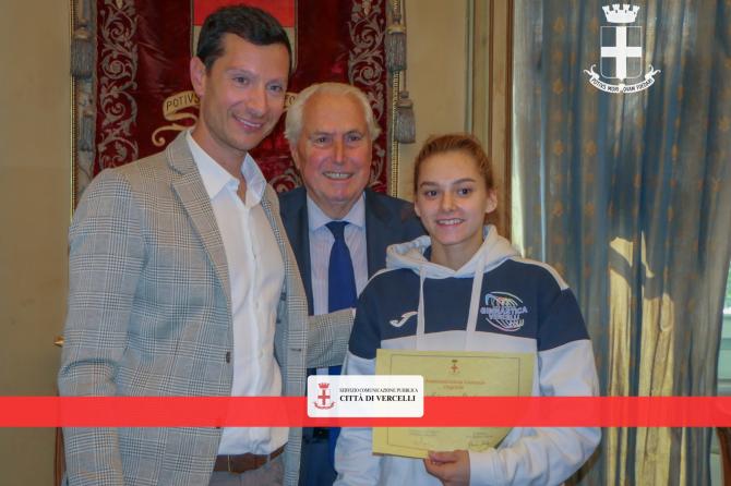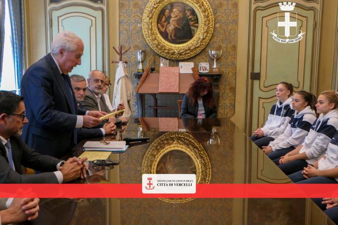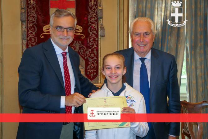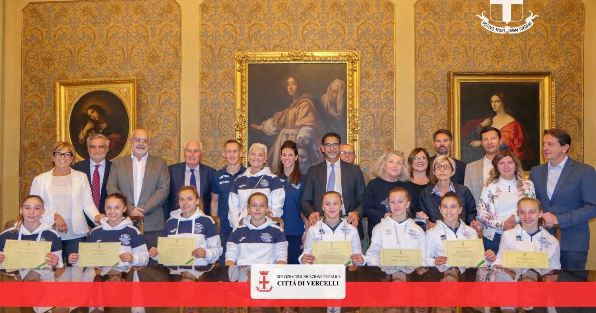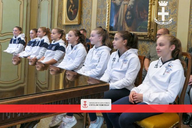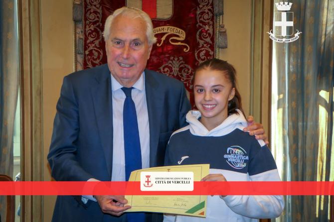 Il sindaco Roberto Scheda e la Giunta hanno accolto in Municipio Giulia Perotti, 16 anni, neo campionessa italiana assoluta di ginnastica, insieme alla squadra allieve della Libertas, vincitrice della medaglia d’oro nella prestigiosa competizione nazionale Gold Star Allieve.