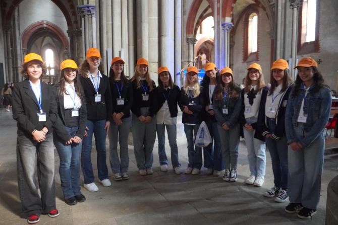 Prima di iniziare il convegno è stato brillante l'intervento delle studentesse della Scuola Secondaria "Ferarri" di Vercelli che durante l'attesa hanno raccontato, banco per banco, storia e curiosità di Vercelli.