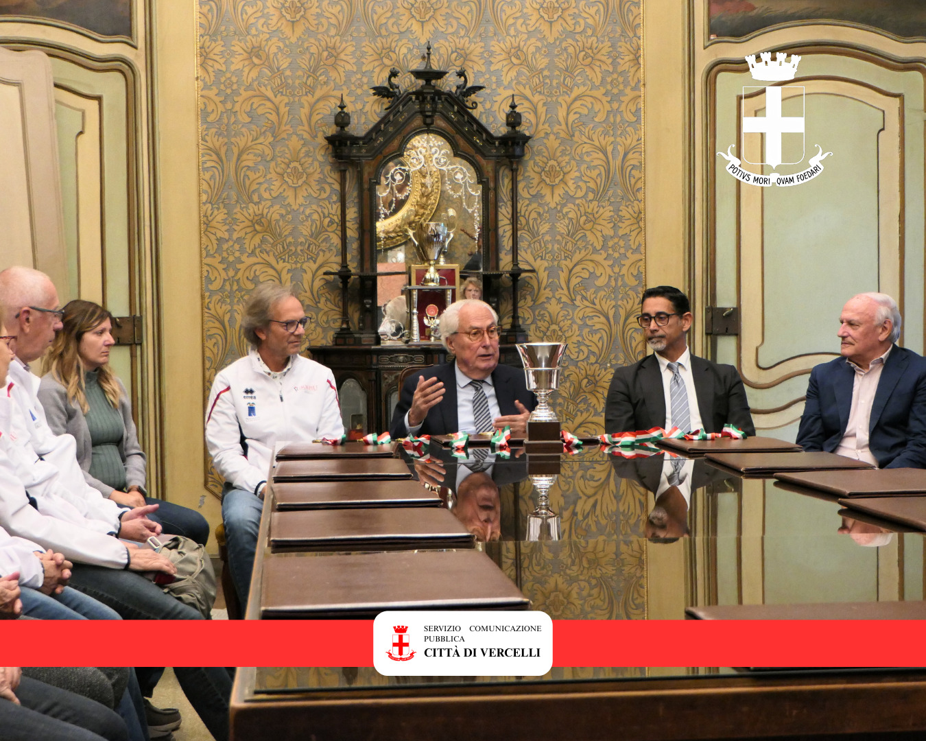 Il sindaco di Vercelli, Roberto Scheda, ha ricevuto questa mattina, in sala Giunta, gli atleti di 50&Più.