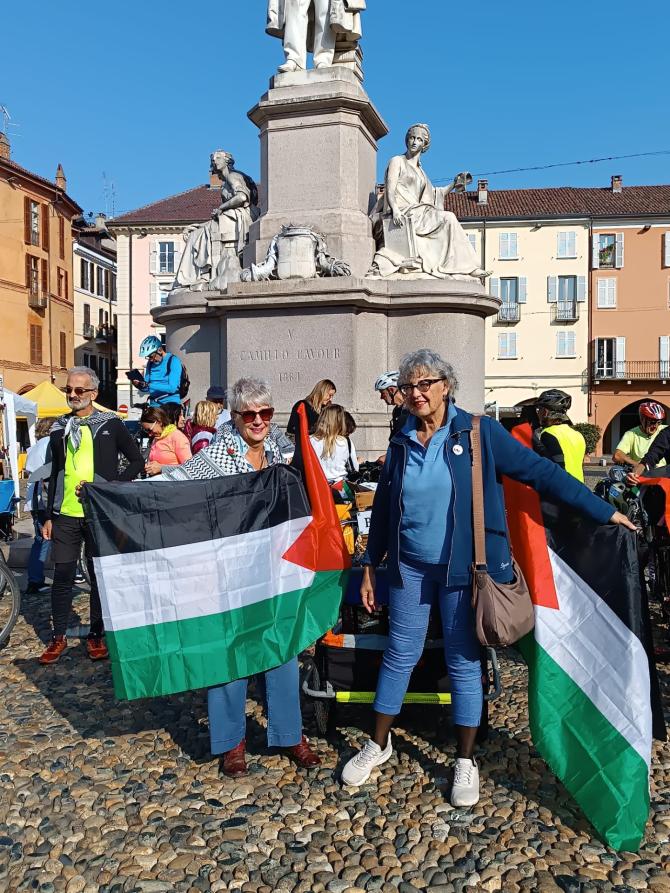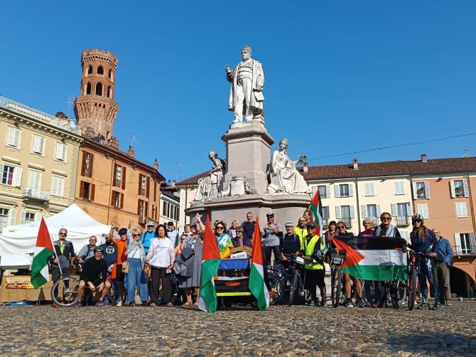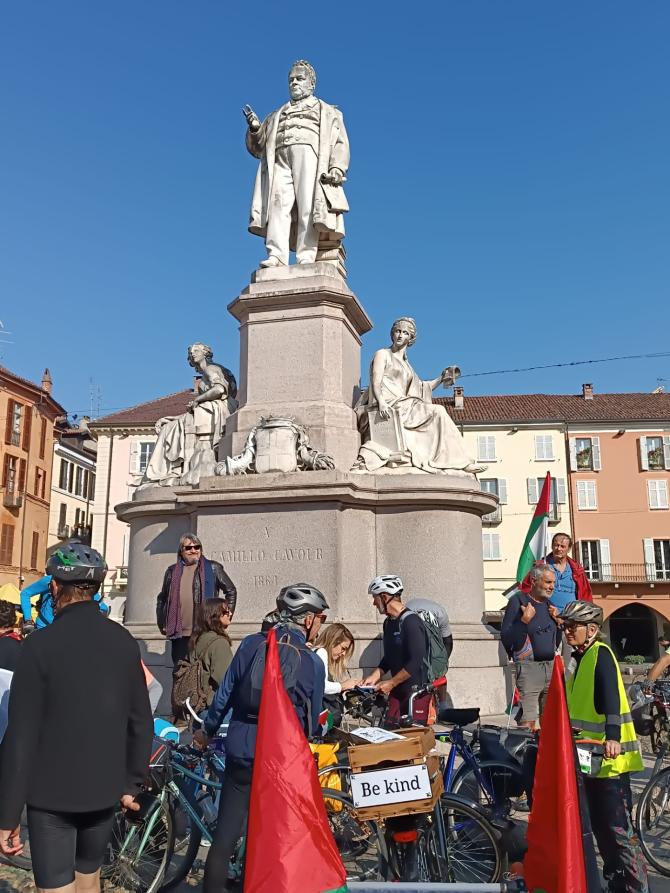 Ha fatto tappa oggi, sabato 18 ottobre, in Piazza Cavour a Vercelli, Bike4Gaza.