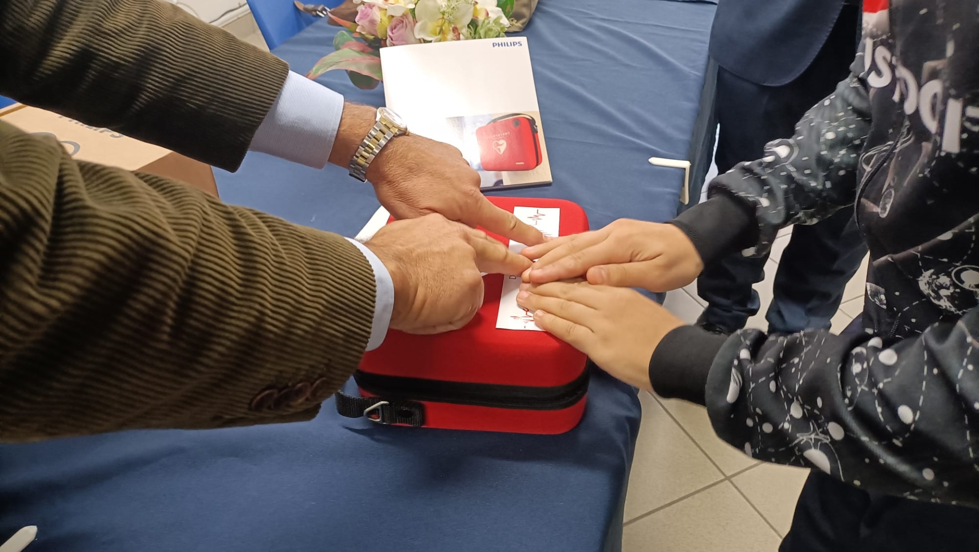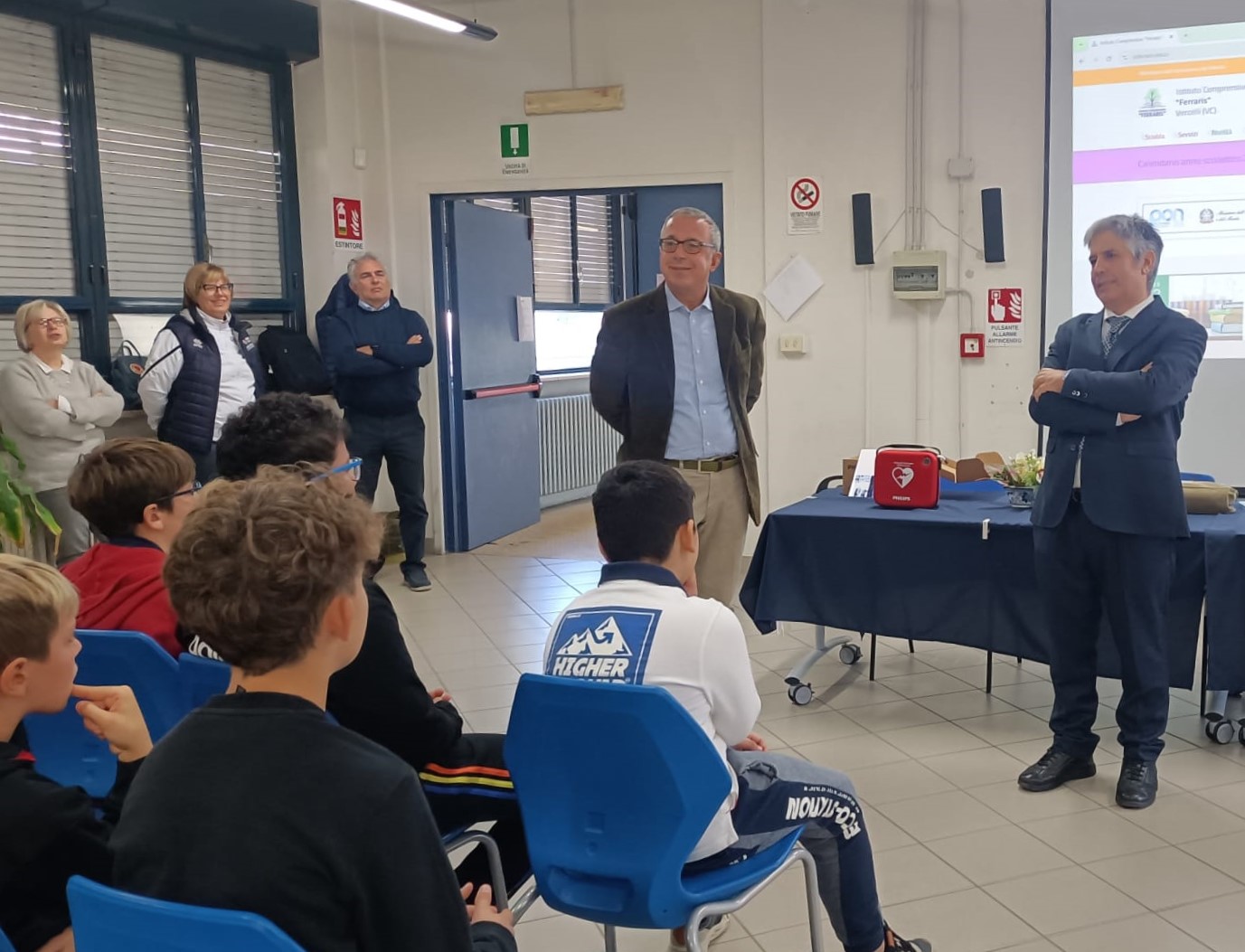L'associazione “Cuore aiuta cuore ETS” ha donato alla scuola Verga un defibrillatore.