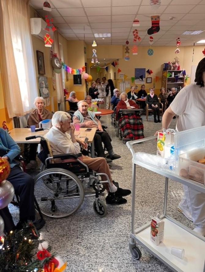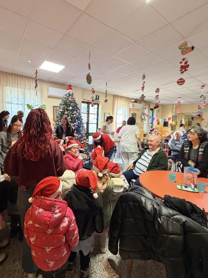 Un vero dialogo tra età diverse, capace di superare il tempo. La mattinata è proseguita con una merenda condivisa, un momento di convivialità che ha unito grandi e piccoli attorno allo stesso tavolo, e si è conclusa con il canto di due canzoni natalizie, intonate dai bambini e dalle loro insegnanti con entusiasmo ed emozione. Le loro voci hanno riempito la RSA di gioia, commuovendo ospiti e operatori.
