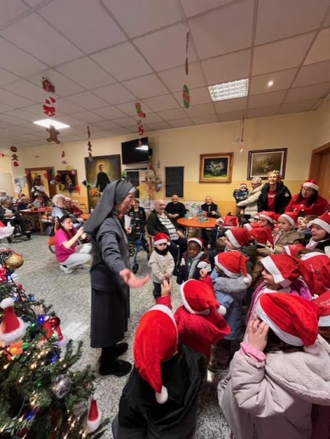 Ben 51 bambini, accompagnati dalle loro insegnanti, hanno portato il Natale tra gli anziani della struttura, regalando sorrisi, abbracci e un messaggio potente: l’importanza del legame tra le generazioni. I piccoli hanno donato agli ospiti regalini realizzati con le loro mani, frutto di impegno, creatività e affetto. Un gesto semplice, ma ricco di valore, che ha illuminato e commosso gli sguardi degli anziani e riempito l’ambiente di calore umano. La sorpresa più bella è stata lo scambio reciproco: anche gli anziani, con grande tenerezza, hanno preparato un dono per i bambini, a testimonianza di un incontro autentico, fatto di cura e attenzione reciproca.