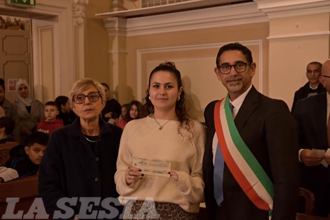 Questi i ragazzi che hanno ricevuto le borse di studio, per un importo totale di 34mila euro. Alessandro Agrillo (300), Aurora Agrillo Aurora (300), Mohamed Anwar Al Achaari (300), Malak Alilou (300), Youssef Amine (400), Inas Amry (500), Mohamed Ziyed Amsalane (300), Wissam Amsalane (300), Iman Arbani (500), Inas Atik (400), Serin Azizi (300), Amira Bahoudi (400), Rida Benbelgacem (300), Leonardo Biglia (400), Ibrahim Caca (300), Clarissa Caca (400), Rose Cadiry (300), Emma Clementina Cassaza (500), Francesca Cazacu (400), Othmane Chaouqane (300), Ismail Chaouqane (300), Ximena Bertha Victoria Chuquillanqui Poma (400), David Stefan Ciocan (300), Francesco Culcasi (300), Emilia Dashi (300), Hergis Dashi (300), Pasindu Michele Dehiwalage Fernando (500), Mithusha Angelo Dehiwalage Fernando (300), Anna Dheskali (300), Anna Dheskali (300), Ferdinando Di Vincenzo (400), Khadija Ed Dardi (400), Salma Ed Dardi (500), Maroua Ed Dardi (500), Ines El Bouchikhi (300), Imad El Hajbi (500), Yousra El Masbahi (300), Salwa Essaadi (500), Zaid Ezzahiraoui (300), Rama Ezzaouani (300), Yahya Faizadi (300), Chiara Ferraris (500), Abdelrahman Ghannay (400), Bilal Graich (300), Alessia Hoxha (400), Ahmed Hrimech (300), Nicolas Iacobino (500), Rajane Ibnoulward (300), Quinto Harumi Danna Inga (400), Vittoria Jaffuel (500), Mark Oliver Jaffuel (500), Rihan Fiorello Perera Jayasuriya Kuranage (300), Nour Jdir (300), Aya Aly Abdalla Ahmed Khalil (300), Malak Lafsahi (500), Yasmine Lahmidi (500), Silvia Likaj (400), Riham Machach (500), Taha Ezzat Adli Abdelhalim Madbouli (300), Salvatore Maniscalco (300), Sofia Maniscalco (300), Noemi Maniscalco (300), Anna Manzo (300), Hajar Mazar (300), Nassima Mechmech (500), Greta Memaj (400), Sara Midane (500), Mattia Muho (300), David Andrei Musat (300), Elisa Matilde Nenciu (300), Jaquelin Azucena Ortiz Peralta (500), Testimony Osaze (300), Israel Oghosa Osaze (300), Matilda Paoletti (400), Letizia Petrelli (300), Maria Sofia Poppiti (300), Letizia Porcelli (500), Susanna Porcelli (300), Noemi Porcelli (400), Aira Prifti (300), Nour Qlimi (300), Mohammad Sofiane Rabah (300), Lamyaa Sadmi (400), Iman Saif (500), Aly Mahmoud Abdelnaby Hamed Sayed (300), Rajaa Seifennasr (500), Nithusan Srikaran (400), Asvitha Srikaran (300), Maria Tataru (500), Ashan Tissera Warnakulasuriya (500), Ettore Zenone (300), Cassandra Zenone (300).