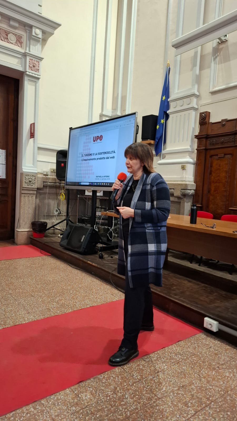 A guidare l’incontro è stata la professoressa Raffaella Afferni, docente dell’Università del Piemonte Orientale, che davanti alle classi 5^D TUR., 4^I TUR. e 3^I TUR. ha messo ordine in una materia spesso evocata e raramente capita: la sostenibilità, applicata al turismo e al digitale.