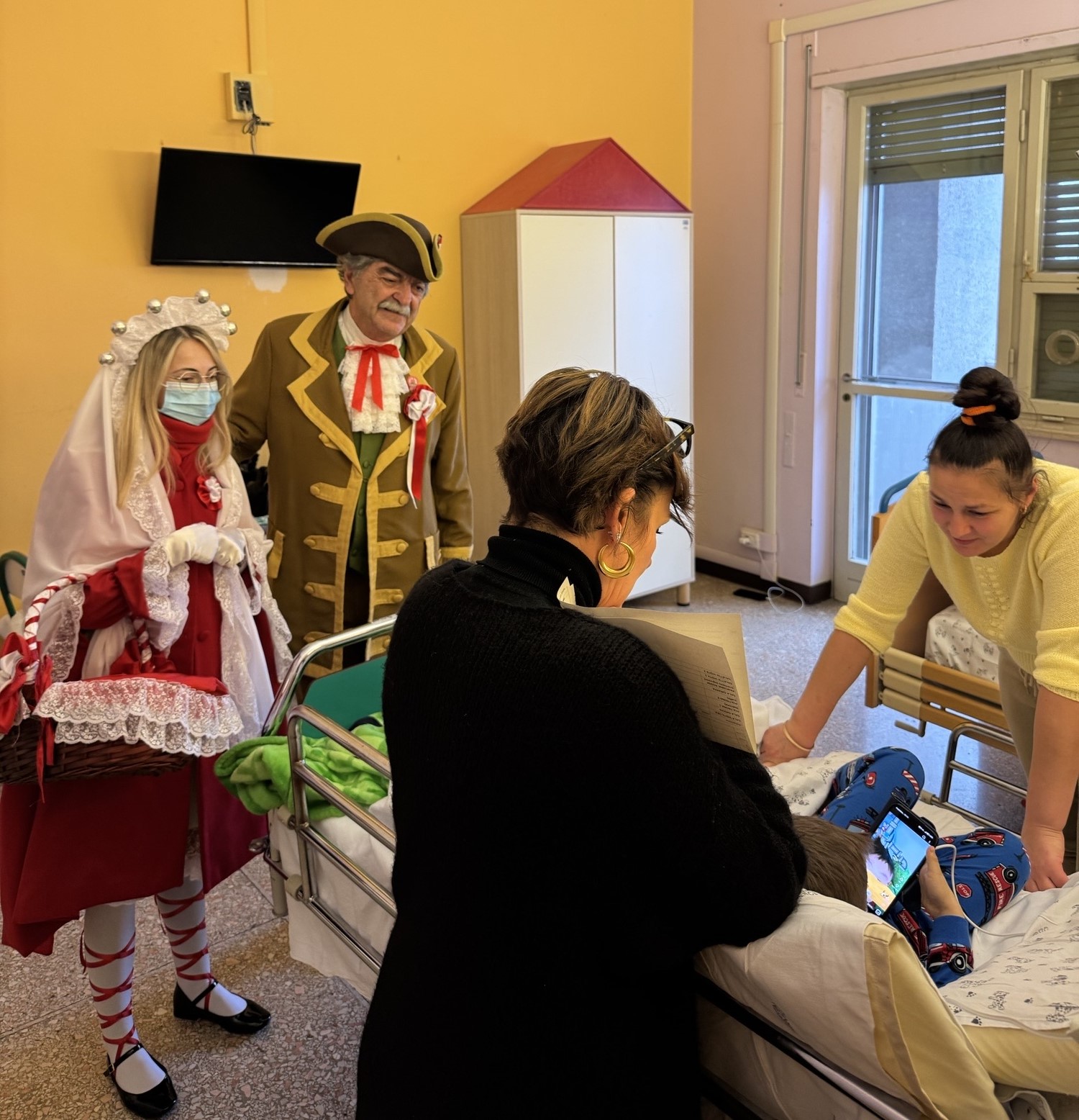 Le maschere vercellesi visitano i piccoli della Pediatria del Sant'Andrea