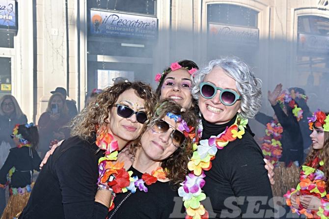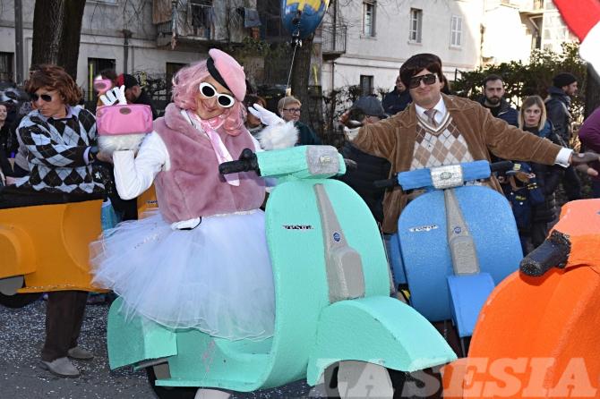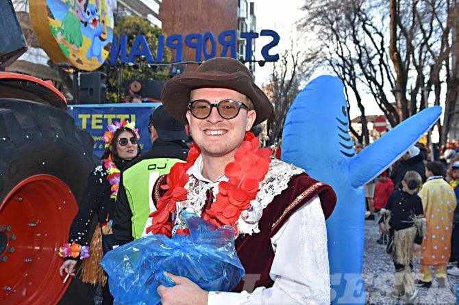 La sfilata dei carri ha visto la presenza di vari gruppi che, al fianco delle imponenti strutture allegoriche, hanno animato la manifestazione con coreografie, costumi curati nei dettagli e coinvolgenti esibizioni musicali. Tra i partecipanti il Bicciolano Claudio Cagnoni e la Bela Majin Claretta Breddo che hanno allietato con la loro simpatia i tanti bambini presenti insieme ai loro genitori. La loro presenza, come da tradizione, ha rappresentato uno dei momenti più apprezzati dal pubblico, tra saluti, fotografie e distribuzione di caramelle.