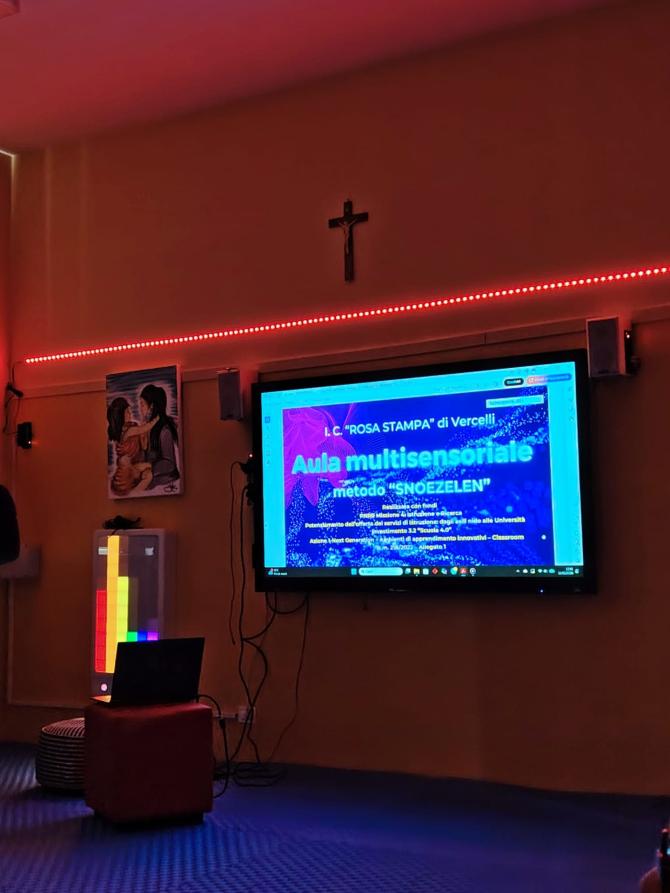 L’istituto, uno dei pochi in Piemonte e unico nel territorio di Vercelli, da qualche anno si è dotato di quest’aula dove è possibile applicare il metodo Snoezelen.