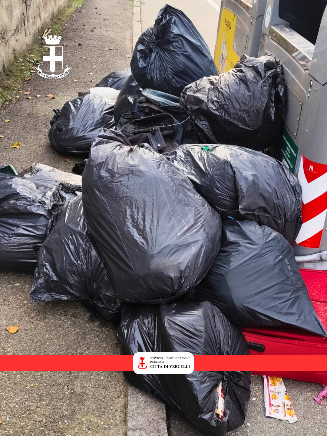 Gli incivili tornano a sfregiare le strade di Vercelli abbandonando in poche ore una trentina di sacchi neri contenenti un centinaio di chili di rifiuti.